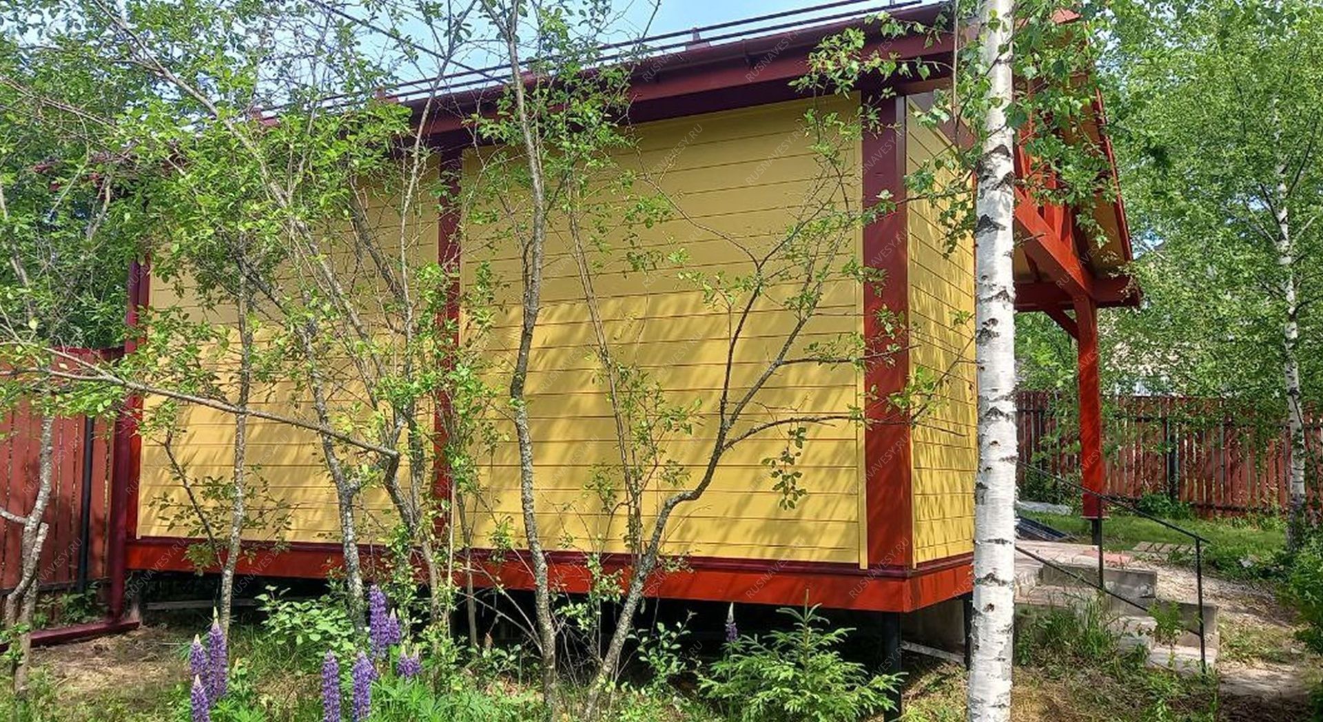 Снаружи - имитация бруса сечением 135х21 мм.