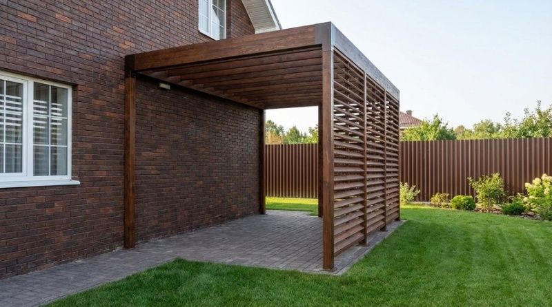 Деревянный навес на загородном участке – очень полезное, а порой и незаменимое сооружение. Он подходит для разных целей: для парковки автомобиля, обустройства зоны отдыха, хранения садового инвентаря, в качестве пристройки к дому. Помимо основного назначения, навес из дерева, как правило, выполняет декоративную функцию, создавая гармонию с домом и окружающей природой. Среди достоинств уличных деревянных конструкций: