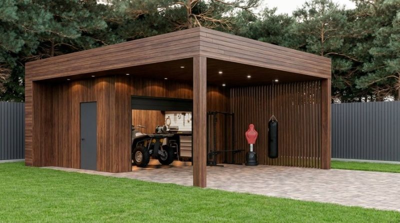 Навес для двух машин и гараж ШАТО