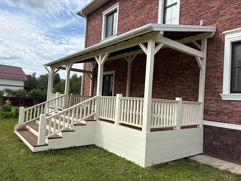 Почти за 10 лет компания «Русские навесы» реализовала строительство более сотни деревянных веранд к дому под ключ. Все конструкции изготавливаются на собственном производстве с использованием проверенных материалов.