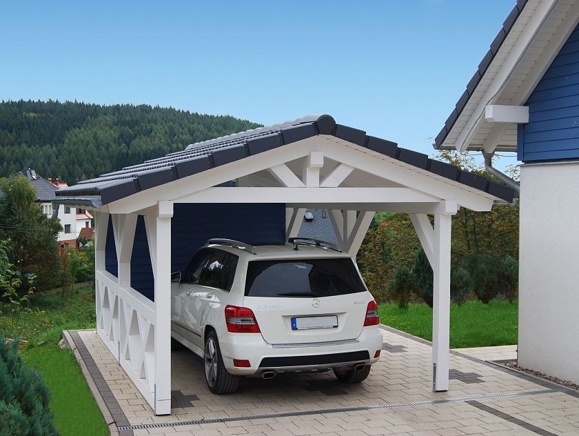 • Навес к частному дому для автомобиля ГРИМСТАД