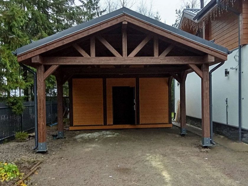 • Навес к частному дому для автомобиля ГРИМСТАД